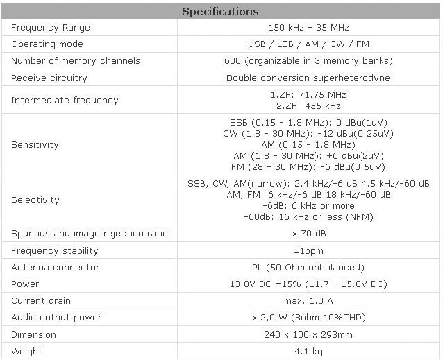 - Narrow ceramic Filter (AM 2.4 kHz/SSB 1 kHz)