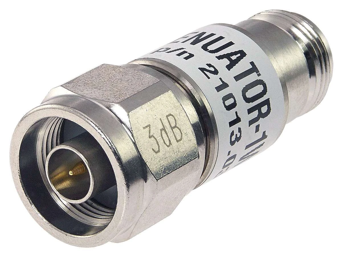 Präzises Dämpfungsglied 3, 6, 10, 20 oder 30 dB, mit N-Anschlüssen (Stecker/Buchse), unerlässlich zur Kalibrierung von Messgeräten oder zu definierten Abschwächung von Signalen.