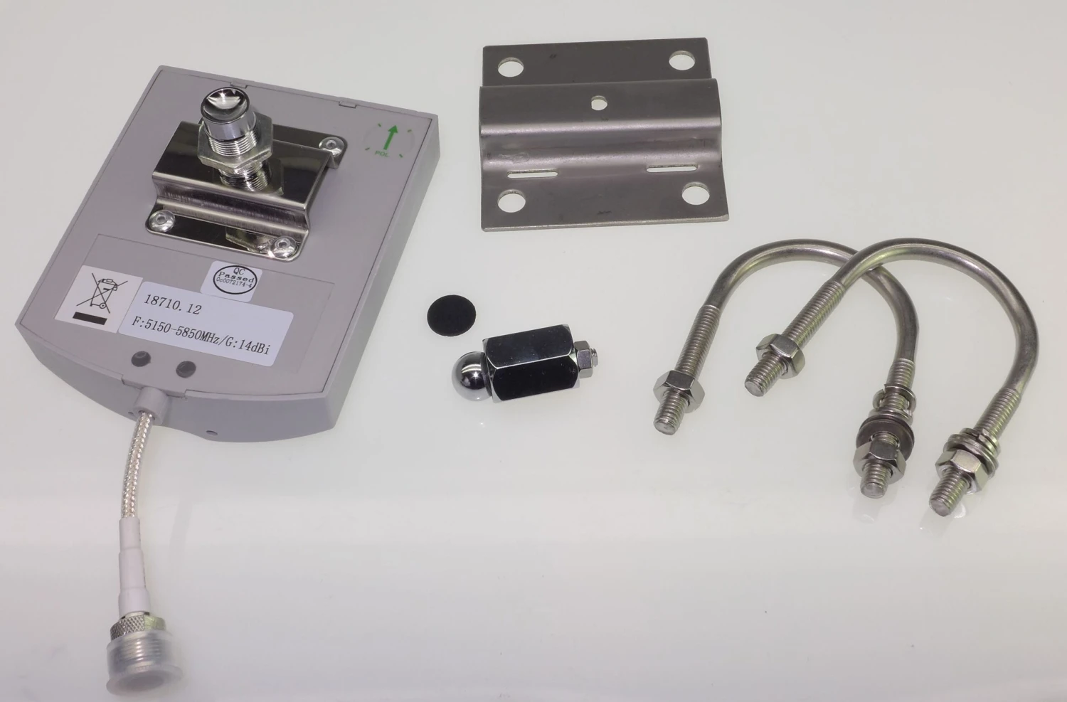 Flachantennen für 5GHz. Durch den geringen Öffnungswinkel sind diese Antennen gut für Punkt-zu-Punkt Verbindungen (Richtfunk) geeignet. PA-500-18/23 inkl. Masthalterung aus Aluguß, die Masthalterung erlaubt auch ein Neigen in der vertikalen Ebene.